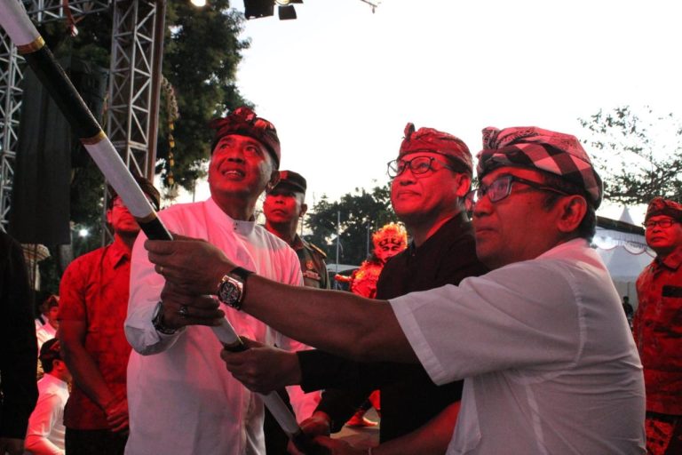 FORUMKEADILANBali.com – Sekretaris Daerah Kota Denpasar Ida Bagus Alit Wiradana membuka Peguyangan Kaja (PEKA) Festival tahun 2024 ditandai menancapkan tombak di Wantilan Desa Adat Peguyangan Kaja, Sabtu (10/8).