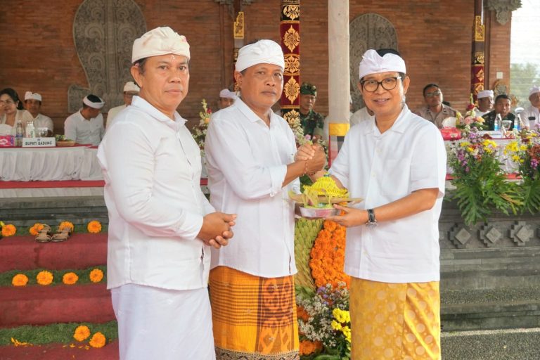 Sebagai bentuk dukungan atas terlaksananya karya, Bupati Adi Arnawa menyerahkan punia Rp20 juta, Wakil Bupati Badung Rp15 juta diterima ketua panitia karya.