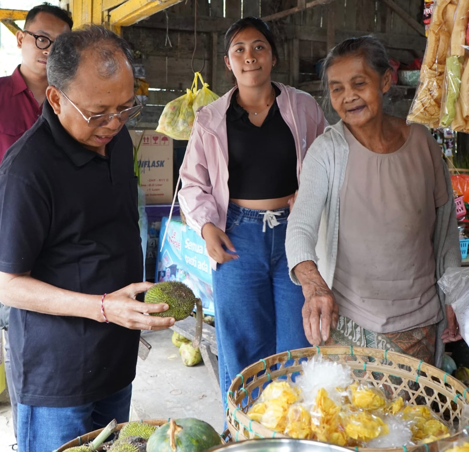 Disela-sela kunjungan meninjau proyek shortcut Singaraja–Mengwitani dan Turyapada Tower, Koster meluangkan waktu berhenti sejenak. Bukan di restoran besar, melainkan di sebuah warung sederhana milik Ni Nyoman Rina (85). Dengan ramah, ia memborong buah timbul (kluwih), nangka, dan sejumlah jajanan tradisional yang tertata di meja kayu sederhana.
