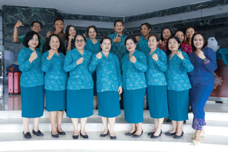 FORUM Keadilan Bali – Ketua Tim Penggerak Pemberdayaan dan Kesejahteraan (TP PKK) Kabupaten Badung Nyonya Seniasih Giri Prasta didampingi Wakil Ketua Nyonya Kristiani Suiasa beserta jajaran menghadiri puncak peringatan Hari Kesatuan Gerak (HKG) PKK ke-51 tahun 2023, diselenggarakan di Ballroom Convention Hotel Santika Premiere Dyandra, Kota Medan, Sumatera Utara, Rabu (17/5).
