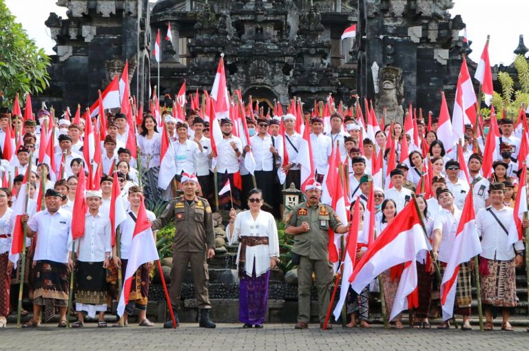 FORUM Keadilan Bali – Ketua TP PKK Provinsi Bali Ny. Putri Suastini Koster mengikuti Gebyar Merah Putih di Monumen Perjuangan Rakyat Bali (MPRB), Selasa (9/8/2022).