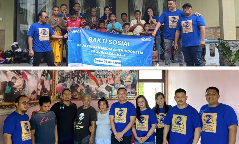 TABANAN, FORUMKEADILANBali.com – Memasuki usia ke-2, Jaringan Media Siber Indonesia (JMSI) Provinsi Bali memilih merayakan hari jadinya dengan cara sederhana namun bermakna. Pada Selasa (28/4/2026), organisasi perusahaan pers itu menggelar bakti sosial di dua titik di Kabupaten Tabanan, mengusung tema ”Kolaborasi Kuat, Pers Bermartabat”.
