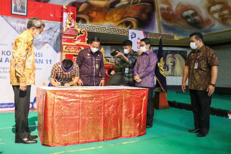 FORUM Keadilan Bali – Sekretaris Daerah (Sekda) Kabupaten I Wayan Adi Arnawa menghadiri acara penandatanganan perjanjian kerjasama antara Balai Diklat Industri Yogyakarta dengan PT Amura Pratama dan Lembaga Pemasyarakatan Kelas II A Kerobokan, di Aula Ardha Chandra, Lapas Kerobokan, Jumat (24/6).