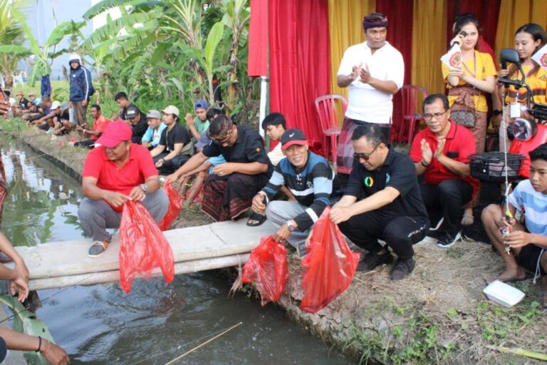 FORUM Kedilan Bali – Walikota Denpasar I Gusti Ngurah Jaya Negara membuka lomba mancing air deras diselenggarakan ST Bina Putra Banjar Lap-ap Tengah, Desa Penatih Dangin Puri ditandai penebaran ikan lele di Subak Temaga Penatih, Minggu (22/10).