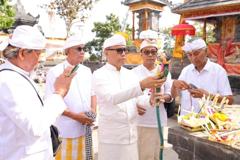 BULELENG, FORUMKEADILANBlai.com – Walikota Denpasar I Gusti Ngurah Jaya Negara sembahyang bersama seangkaian panyineban Pujawali Pura Dankahhyangan Payogan Agung lan Pura Beji Segara Rupek di Kawasan Taman Nasional Bali Barat, Buleleng, Sabtu (28/6/2025).