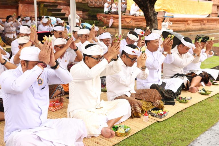 BADUNG, FORUMKEADILANBali.com - Bupati Badung, I Wayan Adi Arnawa menghadiri Pujawali Mejelihan di Pura Luhur Bhujangga Waisnawa Batu Bolong, Desa Canggu, Kecamatan Kuta Utara, Minggu (19/4/2026). Upacara pujawali tersebut dipuput