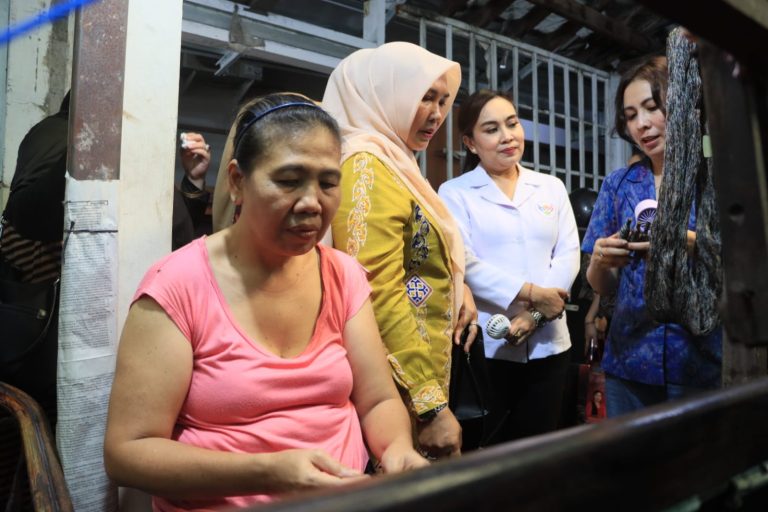 DENPASAR, FORUMKEADILANBali - Wakil Ketua Dekranasda Kota Denpasar, Ayu Kristi Arya Wibawa menerima kunjungan Ketua Dekranasda Aceh Utara, Ny. Musliana Ismail, di sentra perajin Tenun Ikat Bali Nusa, Denpasar, Rabu