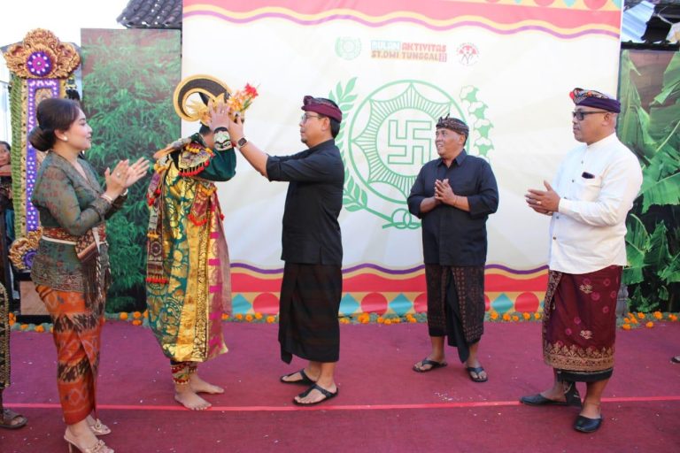 FORUMKEADILANBali.com – Wakil Walikota Denpasar I Kadek Agus Arya Wibawa didampingi Ketua GOW Kota Denpasar Ny. Ayu Kristi Arya Wibawa membuka Gelar Budaya Seka Teruna Teruni Dwi Tunggal Banjar Menesa Puseh, Desa Adat Pedungan, Denpasar Selatan ditandai pemasangan gelung Tari Gambuh, Minggu (11/8) di balai banjar setempat.