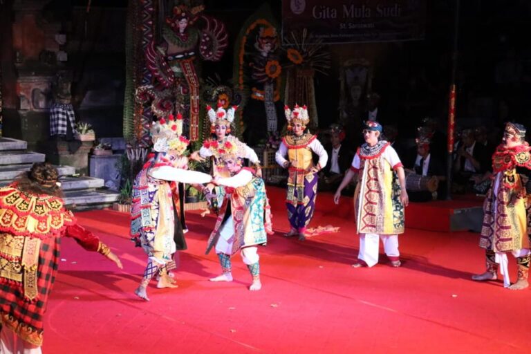 FORUM Keadilan Bali – Pagelaran Arja Klasik Duta Kota Denpasar pada Pesta Kesenian Bali (PKB) XLV dibawakan Seka Arja Gita Mula Sudi Banjar Robokan, Desa Padangsambian Kaja, Denpasar Barat, sukses mengocok perut penonton di Kalangan Ayodya, Selasa (11/7) malam.