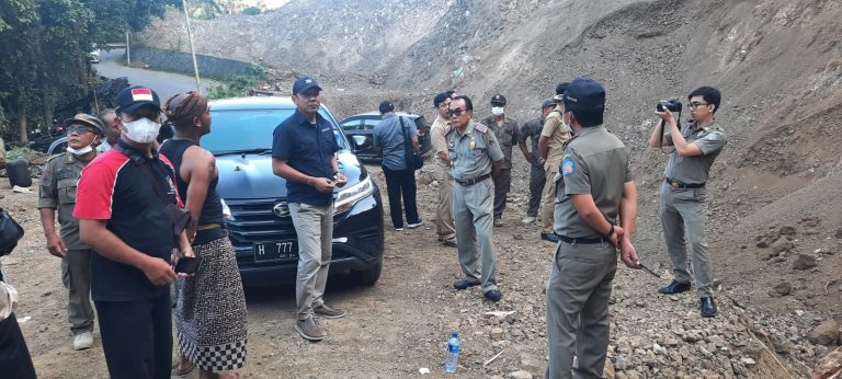 FORUM Keadilan Bali – Menyikapi laporan adanya galian di sisi timur Pura Parahyangan Pasek Punduk Dawa, Desa Pikat, Dawan, Klungkung aparat Pemerintah Provinsi (Pemprov) Bali mengeruduk lokasi galian tersebut, Senin (15/8).