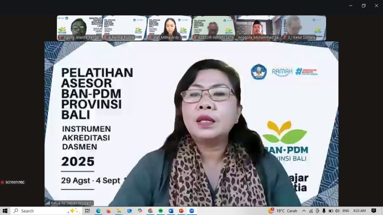 Demikian disampaikan Ketua BAN-PDM Bali Dr. Ni Wayan Mudiarni, M.M., ketika membuka pelatihan Asesor BAN-PDM Bali dilakukan secara dalam jaringan (daring) Sabtu (29/8/2025).