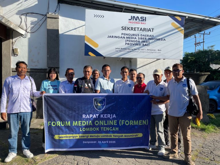 DENPASAR, FORUMKEADILANBali.com – Pengurus Daerah Jaringan Medi Siber Indonesia (Pengda JMSI) Provinsi Bali menerim kunjungan Forum Media Online (FORMEN) Lombok Tengah (Loteng) di Kantor JMSI Bali, Denpasar, Sabtu (26/4/2025).