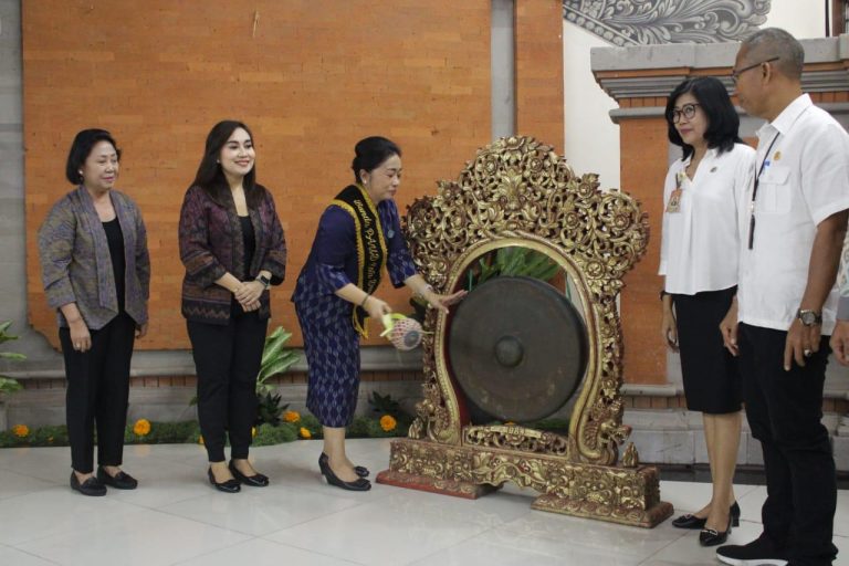 Bunda PAUD Kota Denpasar Ny. Antari Jaya Negara hadir sekaligus membuka sosialisasi untuk memberikan penyegaran dan pembekalan seputar metode mendidik efektif bagi para pendidik.