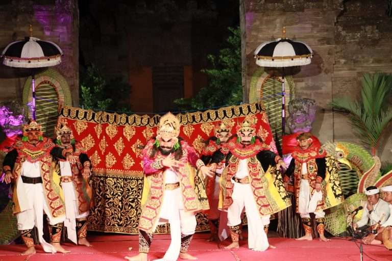 FORUMKEADILANBali.com – Bhakti panganyar serangkaian Karya Padususan Agung dan Ngenteg Linggih di Pura Agung Jagatnatha Denpasar kembali menghadirkan hiburan bagi masyarakat menampilkan garapan Topeng Kolosal dibawakan Paguyuban Seniman Kota Denpasar berjudul Chandra Bairawa di Jaba Pura Agung Jagatnatha Denpasar, Rabu (20/11).