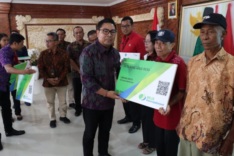 FORUM Keadilan Bali – BPJS Ketenagakerjaan dalam program Gerakan Perlindungan satu Desa 100 Pekerja Rentan diresmikan di Desa Tegal Harum Kecamatan Denpasar Barat, Selasa (7/2).
