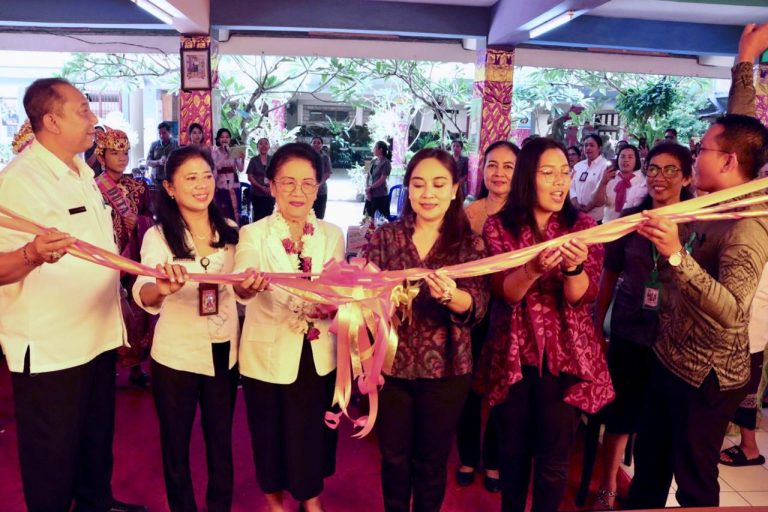 FORUM Keadilan Bali – Ketua Gabungan Organisasi Wanita (GOW) Kota Denpasar Ny. Ayu Kristi Arya Wibawa meresmikan perpustakaan digital SD Saraswasti 2 Denpasar ditandai pemotongan pita, Rabu (31/1).