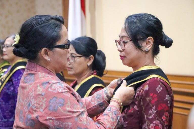 FORUM Keadilan Bali – Bunda Pendidikan Anak Usia Dini (PAUD) Kabupaten Badung Ny. Seniasih Giri Prasta melantik sekaligus menyematkan PIN kepada Pengurus Himpunan Pendidik dan Tenaga Kependidikan Anak Usia Dini Indonesia (HIMPAUDI) Kabupaten Badung periode 2022-2027, se-Badung, di Ruang Kertha Gosana, Puspem Badung, Selasa (27/9).