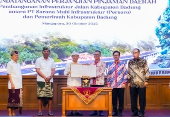 BADUNG, FORUMKEADILANBali.com – Akselerasi pembangunan infrastruktur jalan guna mengurai kemacetan di kawasan Kuta Selatan dan Kuta Utara, Bupati Badung I Wayan Adi Arnawa didampingi Ketua DPRD Badung I Gusti Anom Gumanti menandatangani perjanjian pinjaman daerah pembangunan infrastruktur jalan Kabupaten Badung antara PT. Sarana Multi Infrastruktur (SMI/Persero) dengan Pemkab Badung, bertempat di Ruang Kertha Gosana, Puspem Badung, Kamis, (30/10/2025).
