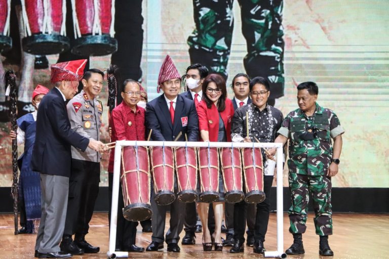 FORUM Keadilan Bali – Bupati Badung I Nyoman Giri Prasta bersama Kapolda Bali Irjen Pol. Putu Jayan Danu Putra, Gubernur Bali Wayan Koster, perwakilan Pangdam Udayana dan Kapolres Badung AKBP. Leo Dedy Defretes menghadiri pembukaan Kongres PSBI (Punguan Simbolon Dohot Boruna Indonesia) IV 2022, di Balai Budaya Giri Nata Mandala, Puspem Badung, Senin (4/7).