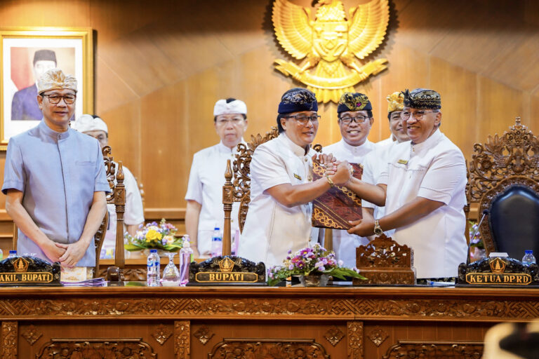 FORUM Keadilan Bali – Bupati Badung I Nyoman Giri Prasta menghadiri Rapat Paripurna DPRD Badung dengan agenda penyampaian Pandangan Umum (PU) Fraksi-fraksi DPRD terhadap Ranperda tentang Perubahan Peraturan Daerah Nomor 5 Tahun 2020 tentang Penguatan Program Bidang Adat, Budaya dan Keagamaan, serta Ranperda Perubahan APBD Tahun Anggaran 2023, di Ruang Sidang Utama Gosana, Kantor DPRD Badung, Rabu (16/8).