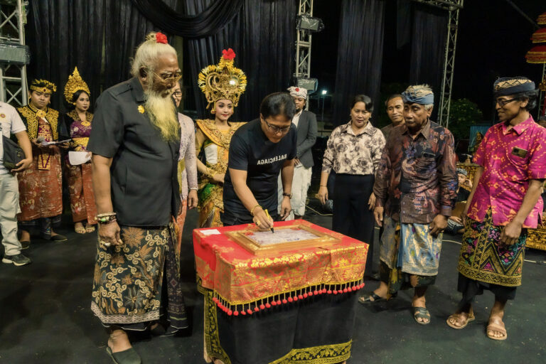 FORUM Keadilan Bali – Bupati Badung I Nyoman Giri Prasta hadir sekaligus membuka Banglor Festival, serta menandatangani sertifikat Tari Maskot Desa Sibangkaja berjudul Sekar Saibang dilaksanakan di Lapangan I Gusti Ngurah Gde Rai Sibangkaja, Jumat (27/10).