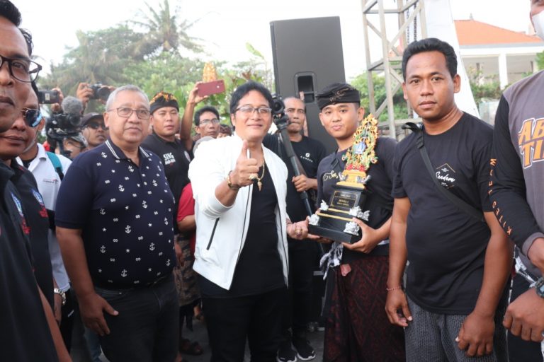 Sebagai wujud dukungan dan motivasi Bupati Badung menyerahkan bantuan dana secara simbolis Rp317 juta dan bonus hadiah uang tunai kepada juara I Rp5 juta bersumber dari dana pribadi kepada Seka Layang-layang Gass Jhon Padangsambian.