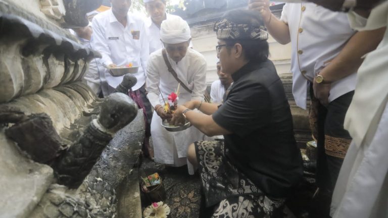 FORUM Keadilan Bali – Bupati Badung Nyoman Giri Prasta mendem pedagingan saat menghadiri Karya Agung Ngenteg Linggih dan Nubung Pedagingan Panca Datu, Penyejeg Caru Panca Rupa, Wraspati Kalpa Agung di Pura Paibon Jineng Pasek Gelgel, Banjar Adat Ambengan Linggah, Desa Adat Sebunibus, Desa Sakti Kecamatan Nusa Penida, Klungkung, Jumat (7/10).