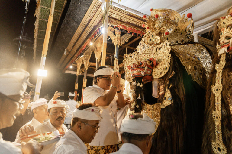FORUM Keadilan Bali – Bupati Badung I Nyoman Giri Prasta menghadiri acara nebes serangkaian ngodakin Tapakan Ida Bhatara Alit, Pura Dalem Buangga, Banjar Buangga, Desa Getasan, Rabu (1/11) di Pura Dalem Buangga, Desa Getasan, Kecamatan Petang.