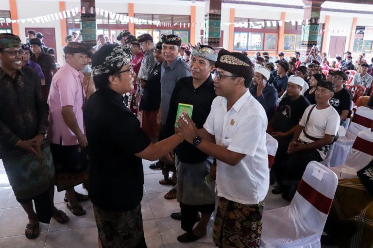 FORUM Keadilan Bali – Guna mempercepat pembangunan yang ada di desa sekaligus memberdayakan masyarakat sesuai kewenangan desa, Bupati Badung Nyoman Giri Prasta menyerahkan Bantuan Keuangan Khusus (BKK) Perubahan Tahun Anggaran 2022 kepada Desa se-Kabupaten Badung, di Wantilan Pura Dalem Desa Sedang, Kecamatan Abiansemal, Sabtu (8/10).