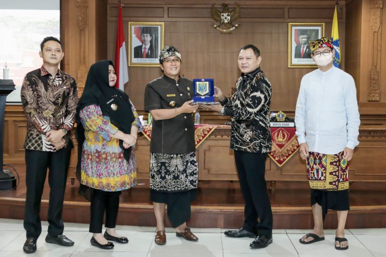 FORUM Keadilan Bali – Bupati Badung I Nyoman Giri Prasta didampingi Wakil Bupati Ketut Suiasa menerima kunjungan kerja (Kunja) Bupati Kabupaten Paser Kalimantan Timur Fahmi Fadli dan Wakil Hj. Syarifah Masitah Assegaf dalam studi komparasi terkait optimalisasi peran dan fungsi koordinasi antar unsur Forkopimda urusan pemerintahan dan memelihara serta membina keamanan dan ketentraman di daerah, di ruang Kriya Gosana Puspem Badung, Kamis (1/9).