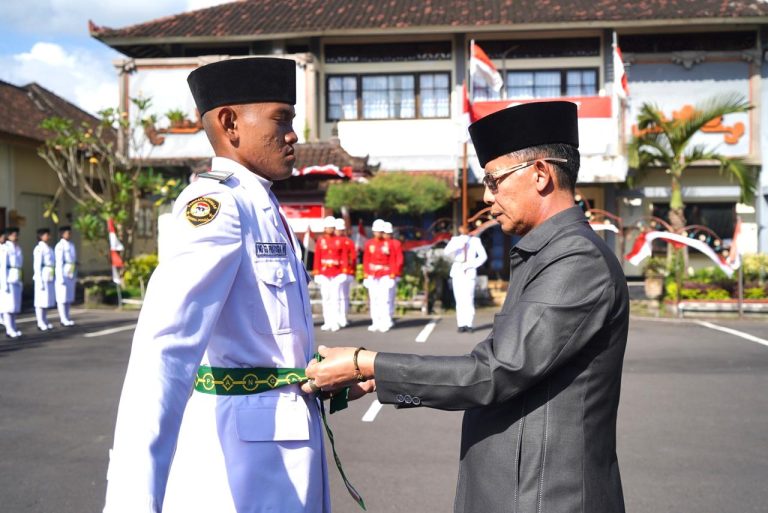 SEMARAPURA, FORUMKEADILANBali.com – Bupati Klungkung I Made Satria mengukuhkan 70 anggota Pasukan Pengibar Bendera Pusaka (Paskibraka) yang akan bertugas pada Upacara Hari Ulang Tahun (HUT) ke-80 Kemerdekaan Republik Indonesia, 17 Agustus 2025 di halaman Kantor Bupati Klungkung, Jumat (15/8/2025).