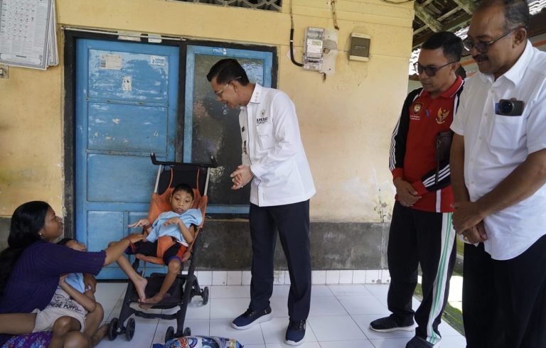 SEMARAPURA, FORUMKEADILANBali.com – Bupati Klungkung, I Made Satria didampingi Kadis Sosial Pemberdayaan Perempuan dan Perlindungan Anak Kabupaten Klungkung Gusti Agung Putra Mahajaya menyerahkan bantuan sembako kepada penyandang disabilitas di Dusun Getakan, Desa Getakan, Kecamatan Banjarangkan, Rabu (18/6/2025).