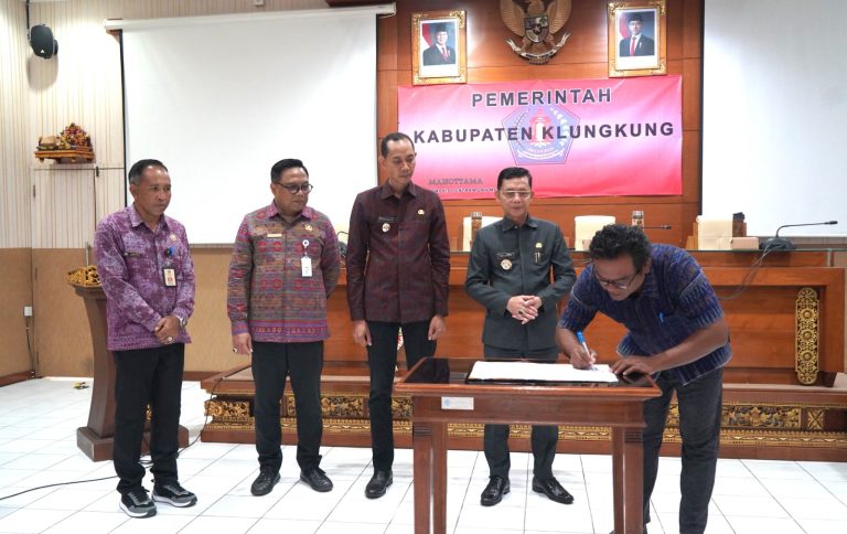 SEMARAPURA, FORUMKEADILANBali.com – Mengoptimalkan pelaksanaan tugas dan fungsi Pemerintah Daerah dan Pemerintah Desa, Bupati Klungkung I Made Satria bersama Perbekel se-Kabupaten Klungkung melakukan penandatanganan nota kesepahaman tentang sinergitas Pemeliharaan Barang Milik Daerah Pemerintah Kabupaten Klungkung di ruang rapat Praja Mandala Kantor Bupati Klungkung, Selasa (30/9/2025).
