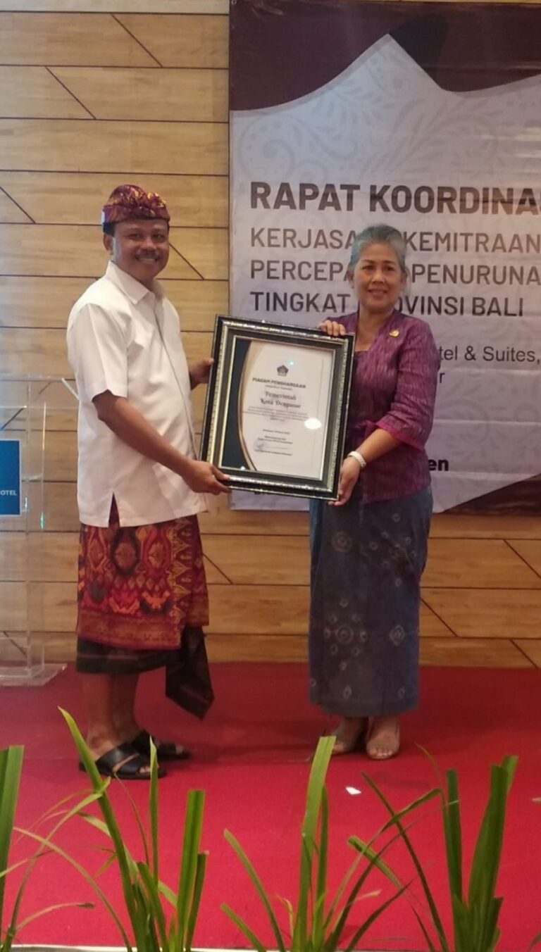 Penyerahan penghargaan dilangsungkan di Prime Plaza Hotel, Denpasar oleh Tim Percepatan Penurunan Stunting (TPPS) Provinsi Bali, Kamis (16/3) dan diserahkan Sekretaris Daerah Provinsi Bali Dewa Made Indra mewakili Wakil Gubernur Bali, yang juga Ketua TPPS Provinsi Bali Tjokorda Oka Artha Ardana Sukawati diterima Kepala Dinas P3AP2KB Kota Denpasar Gusti Agung Sri Wetrawati.