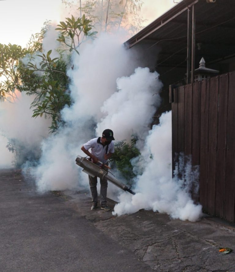 FORUM Keadilan Bali – Mencegah perkembangbiakan nyamuk saat musim penghujan dan meminimalisir kasus demam berdarah (DB), Kelurahan Panjer menggelar fogging di lingkungan Kertasari, Kamis (8/12).