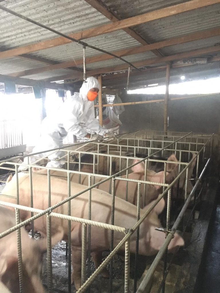 Kadis Pertanian dan Pangan Kabupaten Badung I Wayan Wijana, saat dikonfirmasi membenarkan vaksinasi PMK pada babi mulai dilaksanakan mulai di Desa Jagapati, Kecamatan Abiansemal, Senin (19/9). Hadir dalam kegiatan vaksinasi babi Perbekel Desa Jagapati I Wayan Sutarga, Ketua GUPBI Bali I Ketut Ari Suyasa didampingi Ketua GUPBI Badung Kadek Jaya bersama, tim vaksinasi dan mahasiswa FKH Unud.