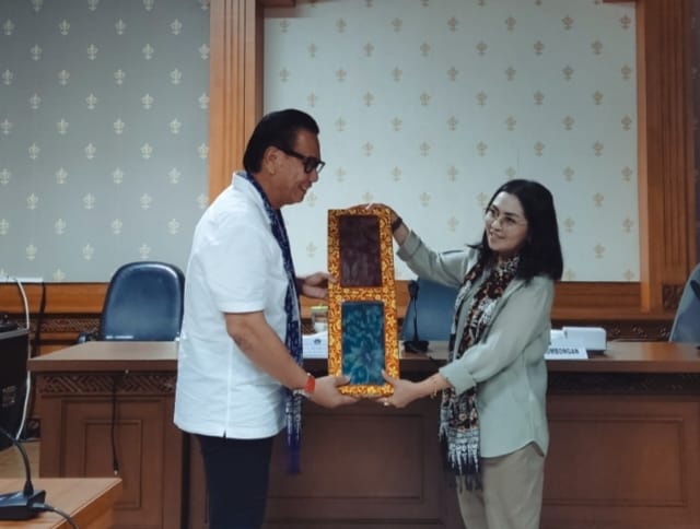 BADUNG, FORUMKEADILANBali.com – Ketua Dewan Kerajinan Nasional Daerah (Dekranasda) Kabupaten Badung, Nyonya Rasniathi Adi Arnawa menerima kunjungan kerja Dekranasda Kabupaten Minahasa, Provinsi Sulawesi Utara. Rombongan dipimpin Ketua Harian Dekranasda Kabupaten Minahasa, Dano Refiano Warouw, beserta jajaran disambut hangat di Balai Budaya Giri Nata Mandala, Puspem Badung, Rabu, (12/11/2025).