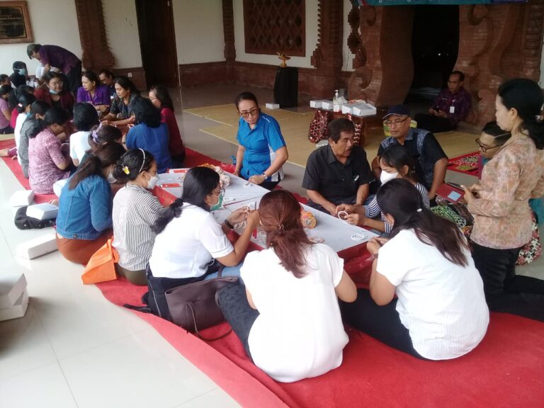FORUM Keadilan Bali – Upaya Pemkot Denpasar dalam penanggulangan sampah khususnya non organik, Desa Dangin Puri Kangin, Kecamatan Denpasar Timur, menggelar pelatihan daur ulang sampah plastik menjadi tas belanja di Wantilan Pura Swagina Pura Taman Sari, Rabu (8/3).