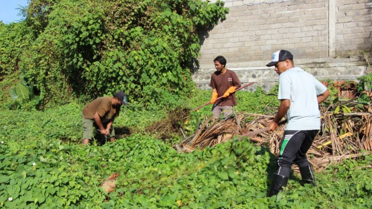 Desa Dauh Puri Kaja membuka lahan persiapan padat karya tunai ketahanan pangan hewani dan nabati di Jl Kalisari Gg I Dusun Lumintang, Kamis (16/6).