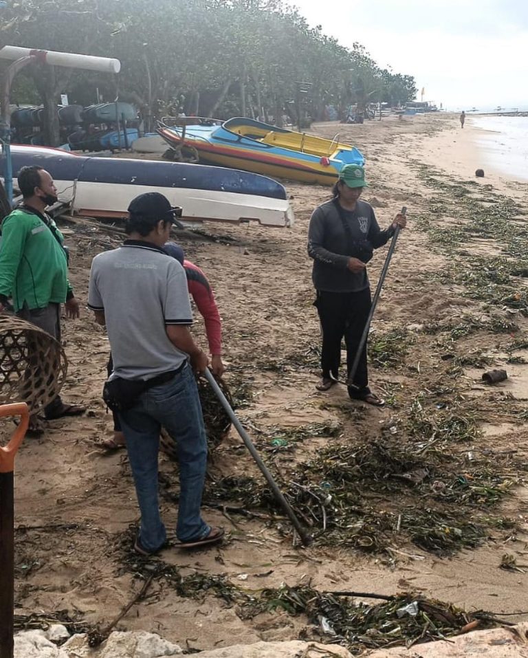 FORUM Keadilan Bali – Guna menjaga kebersihan kawasan wisata Sanur, Dinas Lingkungan Hidup dan Kebersihan (DLHK) Kota Denpasar dengan cepat menangani sampah kiriman di kawasan Pantai Sanur, Denpasar, Jumat (15/7).
