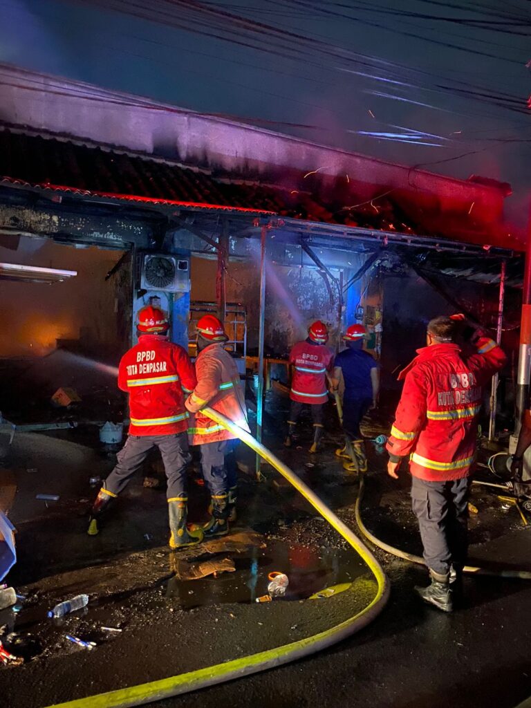 FORUM Keadilan Bali – Empat blok ruko tempat berjualan sembako Ibu Desi dan Subardi usaha laundry di Jl. Ceningan Sari, Banjar Lingkungan Lantang Bejuh, Kelurahan Sesetan, : Denpasar Selatan ludes terbakar Selasa (26/9) pukul 23.30 Wita.