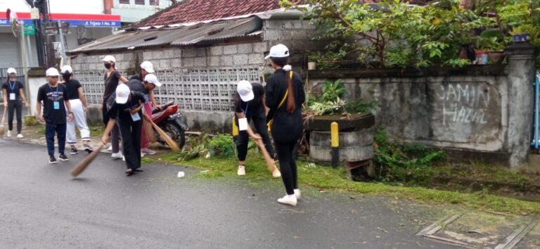 FORUM Keadilan Bali – Desa Dangin Puri Kangin bersama Mahasiswa Universitas Warmadewa yang sedang melakukan Kuliah Kerja Nyata (KKN) melakukan Jumat bersih di Jalan Tunjung, lingkungan Br. Mertha Rauh, Desa Dangin Puri Kangin, Denpasar, Jumat (3/2)