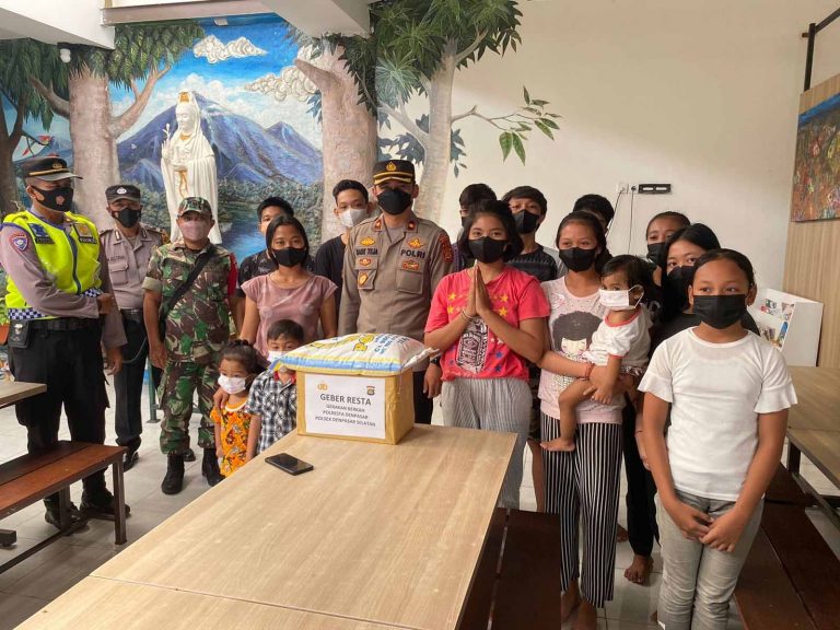 FORUM Keadilan Bali – Menindaklanjuti program Kapolresta AKBP Bambang Yugo Pamungkasyakni Gerakan Berkah Polresta Denpasar yang dilaksanakan tiap Jumat, Polsek Densel Jumat (17/6) sore menyambangi Yayasan Angel Heart Bali untuk berbagi sembako kepada anak yatim di sana.