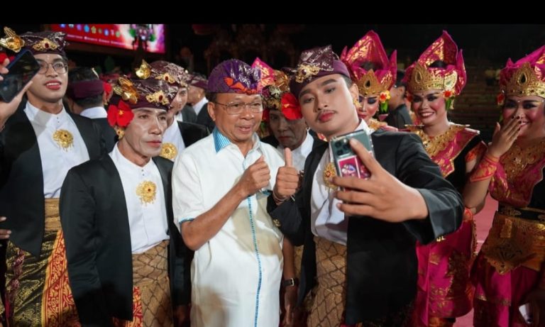 Usai pergelaran, Gubernur Wayan Koster disambut hangat para seniman dan warga yang antusias mengajak foto bersama. Di sela-sela foto bersama, Gubernur menyampaikan apresiasi tinggi atas penampilan kedua duta kabupaten/kota tersebut.
