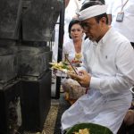 Usai persembahyangan, Sekda Alit Wiradana bersama hadirin lainnya melaksanakan prosesi Nguduh Sarwa Tumuwuh. Prosesi ini untuk memberikan persembahan kepada tumbuh-tumbuhan melalui sarana persembahan bubuh (bubur) lima warna.
