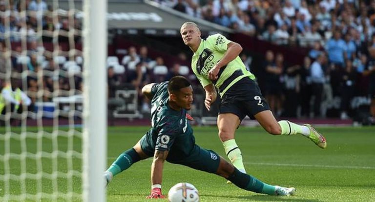 Dalam laga perdana tersebut City sempat membobol gawang West Ham pada menit ke-27. Kevin De Bruyne menuntaskan umpan tarik dari Ilkay Gundogan, tetapi gol dianulir karena Gundogan ada dalam posisi offside saat menerima bola dari Haaland. The Citizens mendapatkan kans emas untuk mencetak gol setelah Haaland dijatuhkan oleh kiper West Ham Alphonse Areola pada menit ke-36.
