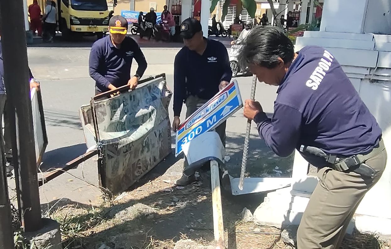 FORUMKEADILANBali.com – Satuan Polisi Pamong Praja (Satpol PP) kota Denpasar menertibkan puluhan spanduk, pamflet, baliho, banner. Selain menertibkan baliho juga menyemprit pedagang kaki lima (PKL) berjualan di badan jalan dan trotoar.