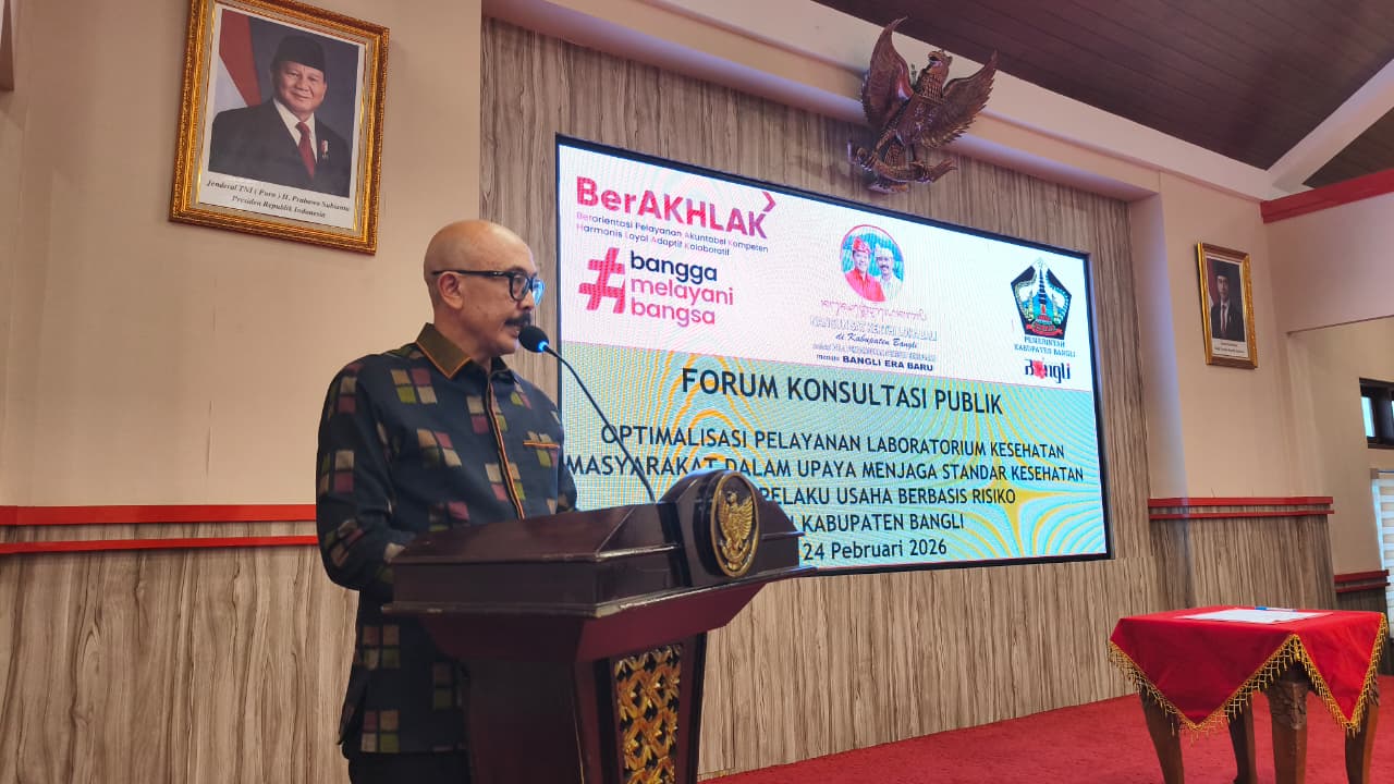 BANGLI, FORUMKEADILANBali.com – Pemerintah Kabupaten Bangli terus memperkuat standar kesehatan di sektor pariwisata dan usaha berbasis risiko. Hal ini ditegaskan dalam Forum Konsultasi Publik (FKP) bertema “Optimalisasi Pelayanan Laboratorium Kesehatan Masyarakat dalam Upaya Menjaga Standar Kesehatan pada Pelaku Usaha Berbasis Risiko” digelar di Gedung Bukti Mukthi Bakthi, Kantor Bupati Bangli, Selasa (24/2/2026).