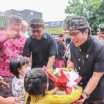 Wawali Arya Wibawa didampingi Sekda Kota Denpasar IB Alit Wiradana, Asisten Pemerintahan dan Kesra Setda Kota Denpasar I Made Toya serta Kadisbud Kota Denpasar Raka Purwantara nyolahang (menarikan) punggelan barong bersama.