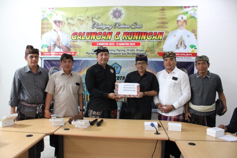 FORUM Keadian Bali – Pemerintah Kota Denpasar melalui Badan Kesatuan Bangsa dan Politik (Kesbangpol) menyerahkan bantuan 238 kilogram daging babi kepada Majelis Hindu di bawah naungan Parisada Hindu Dharma Indonesia (PHDI) Kota Denpasar.